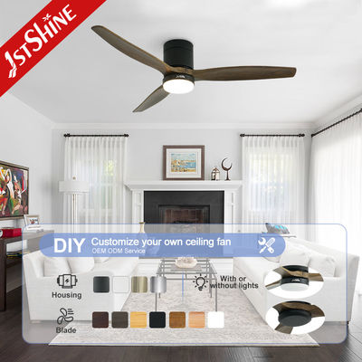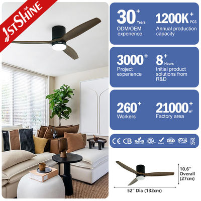3 شفرات خشبية طبيعية منخفضة الوضوح فلش جبل 52 بوصة مروحة السقف مع الضوء LED