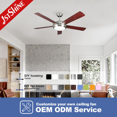مروحة سقف LED مع الضوء والتحكم عن بعد 52 بوصة 5 شفرة خشب مزروعة الزخرفية
