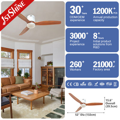 مروحة سقف داخلية بشفرات خشبية صلبة 52 بوصة مع إضاءة وجهاز تحكم عن بعد