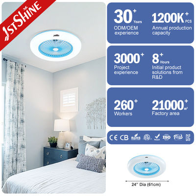 مروحة سقف صندوق غرفة نوم حديثة سقف زخرفي محرك التيار المتردد 24 " شفرات بلاستيكية 3 ألوان LED