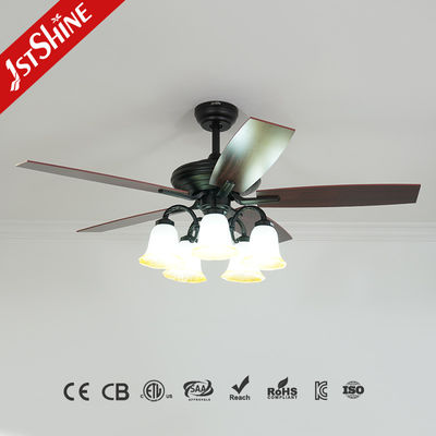 3 سلسلة السحب السريعة المروحة السقف الكلاسيكية 5 شفرات خشب مزروعة ديكورية الفندق