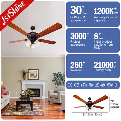 مروحة سقف إضاءة زخرفية مقاس 52 بوصة 220 فولت 5 شفرات للمطعم