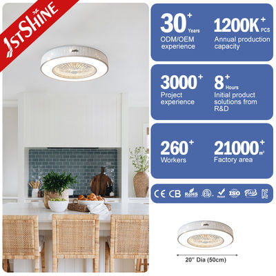 مزيج بين مروحة السقف وإضاءة LED بتشطيب أبيض عصري. تتميز بعدم وجود شفرات مكشوفة مع موجه هواء ABS يمكن تعديله 360 درجة بحرية.