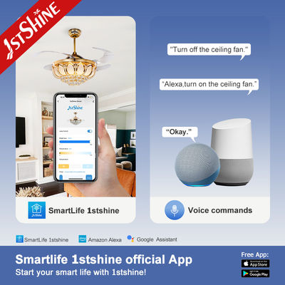 مروحة السقف الكريستالية ذات الشفرة ABS قابلة للانسحاب 42 بوصة مع ضوء LED