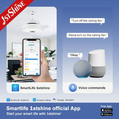 مروحة سقف مع إضاءة، تحكم عبر الواي فاي، بشفرات مخفية، محرك تيار متردد، 6 سرعات، تحكم عن بعد