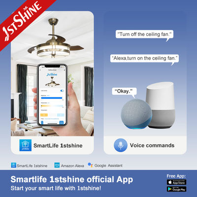 مروحة سقف LED قابلة للطي مزخرفة محرك DC شفرات قابلة للسحب من الأكريليك