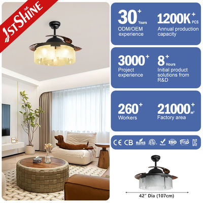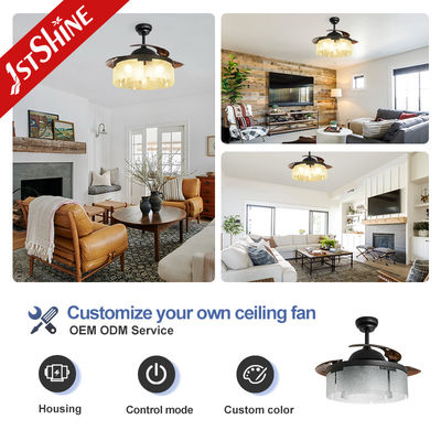 مروحة سقف LED داخلية موفرة للطاقة بمحرك DC مع جهاز تحكم عن بعد