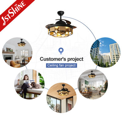 مروحة سقف داخلية سوداء قابلة للانسحاب ذات ضوء وجهاز تحكم عن بعد