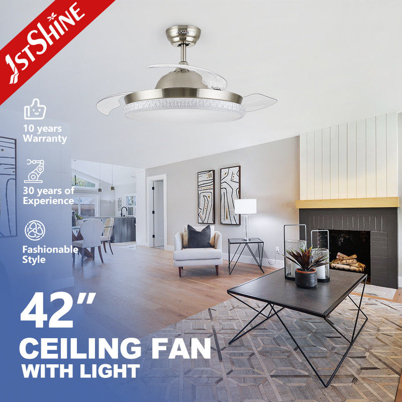مروحة سقف قابلة للسحب مع أضواء 42 بوصة مروحة سقف حديثة لغرفة النوم بثلاثة ألوان قابلة للتغيير