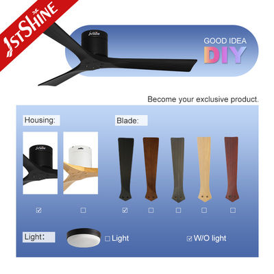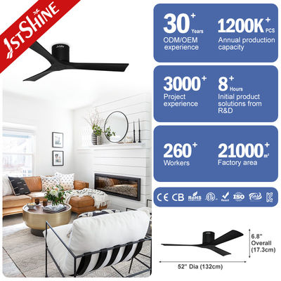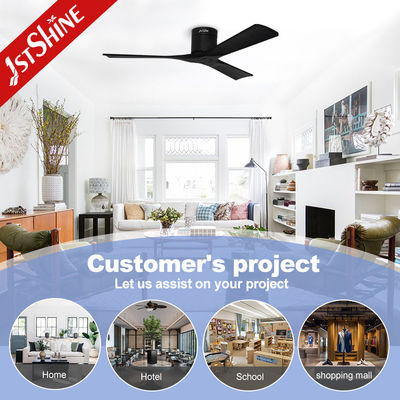 مروحة سقف خشبية صلبة بثلاث شفرات باللون الأسود، مروحة سقف مثبتة على السطح مع جهاز تحكم عن بعد