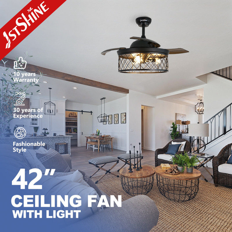 تحتوي مروحة السقف الخاصة بنا على طراز المزرعة مع الأضواء على 3 شفرات مروحة غير مرئية، والتي ستتمدد وتوضع في الداخل تلقائيًا عند تشغيل/إيقاف تشغيل المروحة. الشفرة مصنوعة من مادة الكمبيوتر الشخصي عالية الجودة، مما يجعلها أكثر متانة. تناسب احتياجاتك في جميع الفصول. تحتوي مصابيح مروحة السقف على طراز المزرعة على 3 حاملات E26 قياسية، وينقسم كل حامل. يتم تجميع أي مصباح LED E26 بسهولة دون إزالة القفص. مثالية لغرفة المعيشة وغرفة النوم والمطعم وغرفة الطعام وما إلى ذلك.