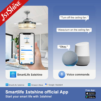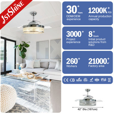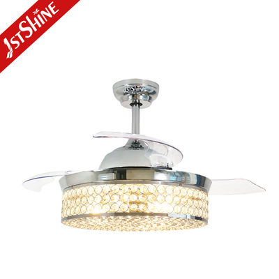 شفرات قابلة للسحب محرك DC منخفض الطاقة مروحة سقف كريستالية ضوء لغرفة النوم
