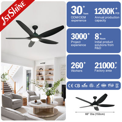 60 بوصة DC المحرك الأسود البلاستيكية منخفضة الضوضاء مروحة السقف مع 5 سرعات اختيار التحكم عن بعد