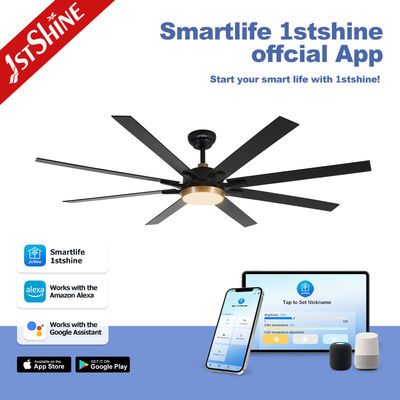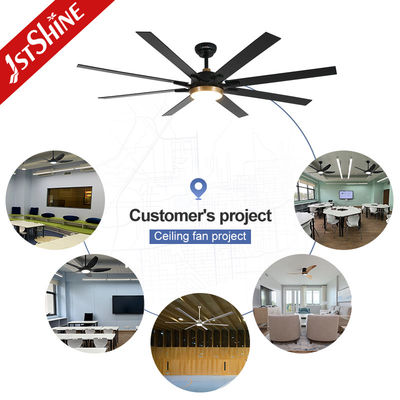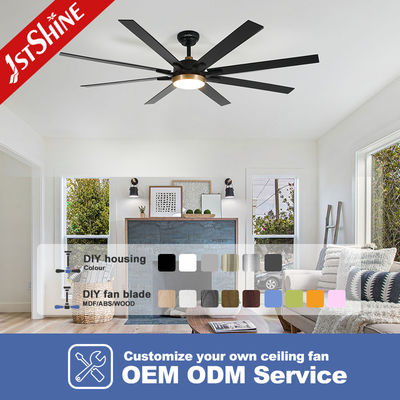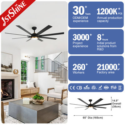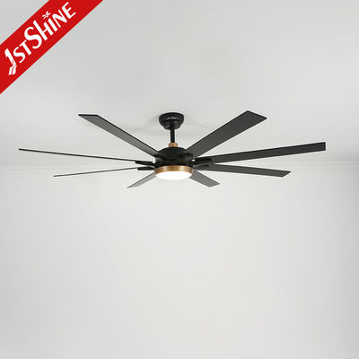 مروحة السقف الكبيرة 65 " سوداء متطاطية 8 شفرات MDF DC محرك LED مروحة السقف مع التحكم عن بعد