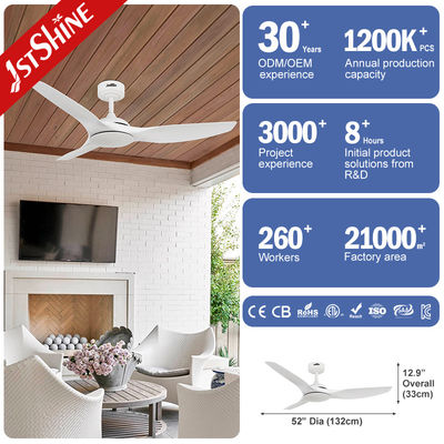 مروحة السقف البيضاء من 52 بوصة بدون ضوء ABS Blade Smart APP Control