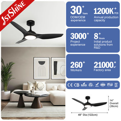 مروحة سقف سوداء من البلاستيك بمحرك DC مقاس 60 بوصة منخفضة الضوضاء مع جهاز تحكم عن بعد بـ 5 سرعات